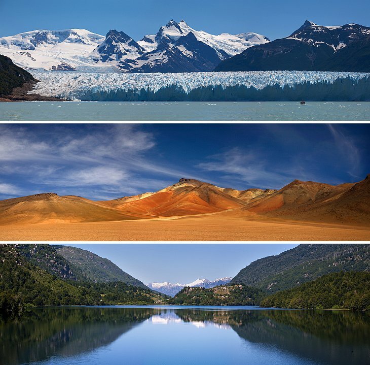Здесь находится самая длинная в мире горная цепь (Анды, 7 600 км). Это самый дождливый материк: на западных склонах Анд дожди выливают за год столько воды, что, не стекая, она могла бы покрыть землю слоем до 15 метров. Недалеко от этого места находится пустыня Атакама в Чили — самое засушливое место на Земле: там годами не выпадает ни единой капли дождя. В Южной Америке находится самый высокий водопад планеты Анджел Фолз (979 м), самое высокогорное судоходное озеро Титикака, самая большая лагуна Дос Патос... Сегодня у нас 12 больших панорам Южной Америки.