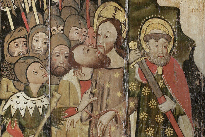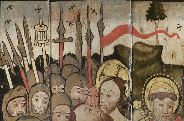 Поцелуй Иуды. Около 1460 года, Англия. Фрагмент. Музей Фицуильяма, Кембриджский университет, Кембридж, Великобритания.