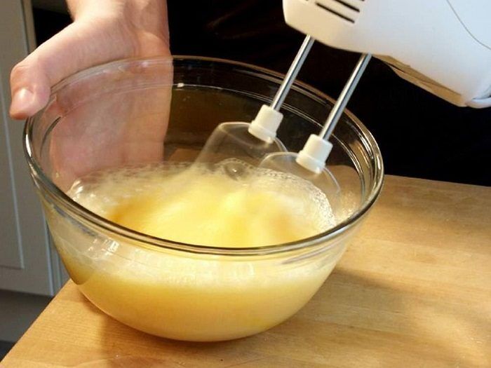 Обратите внимание: Если ваш миксер работает неидеально и ему не хватает скорости, тогда нужно отделить белки от желтков и взбивать их отдельно. Когда желтки побелеют, а белки превратятся в крепкую пену, аккуратно смешайте их друг с другом с помощью лопатки.