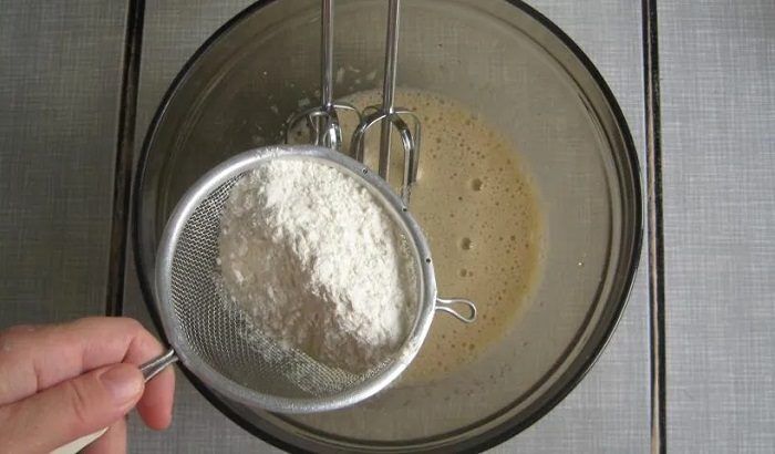 Иногда нам кажется, что чем быстрее и интенсивнее мы перемешиваем тесто, тем лучше объединяются ингредиенты, и тем вкуснее получается бисквит. Увы, это не так. После того, как вы смешали яйца с сахаром и начали вводить муку, действовать нужно очень осторожно. Для начала просейте муку вместе с разрыхлителем и специями (если они указаны в рецепте), а затем частями добавляйте в тесто, аккуратно вмешивая ее лопаткой. Двигайтесь от краев к центру – так вы насытите тесто воздухом, а не забьете его.