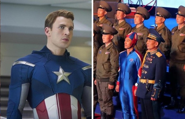 Американская аудитория интернета изрядно посмеялась над северокорейским парашютистом (вернее над его формой), который попал в объективы камер во время торжественной церемонии, на которой присутствовал глава Северной Кореи Ким Чен Ын. Многие пользователи Сети даже пошутили о том, что в действительности супергерой Капитан Америка является корейцем и стоит отнюдь не на стороне США.
