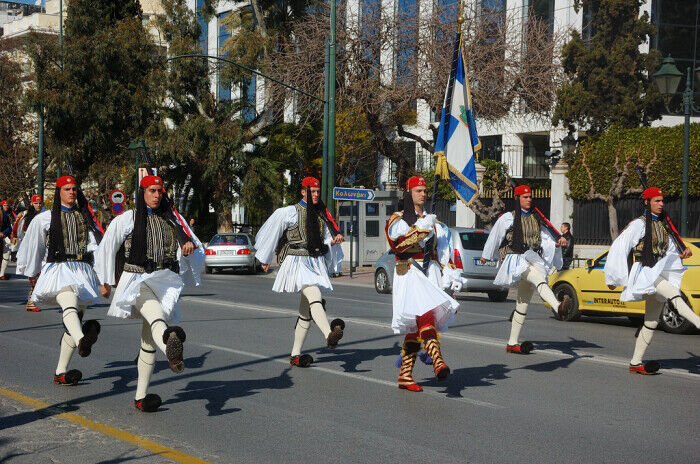 У бравых гвардейцев элитного подразделения в Греции достаточно интересная форма, даже причудливая. Шляпа из бархата, пышная юбка белого цвета, шерстяные белые обтягивающие чулки и туфли с помпонами. Подобный наряд больше подходит для модных показов, но никак не для военных. Но все не так просто. Эта форма имеет свою историю, достаточно долгую и увлекательную.