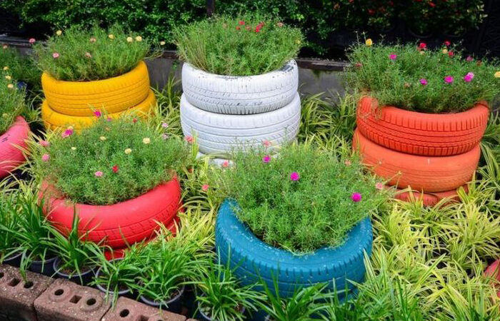 У креативных огородников ни одна шина не пылилась в гараже. Из них они изготавливали самые разные грядки. К примеру, шина выворачивалась наизнанку ради получения оригинальной формы. А затем в нее сажали ампельные растения. Также шины подвешивались на веревки или прибивались к хозяйственным постройкам. Получалась клумба в морском стиле.