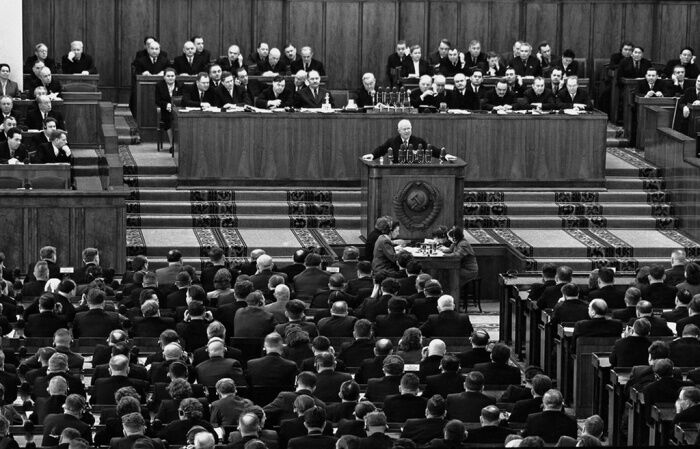 При Сталине шло создание практически той же Российской империи, хотя и под иными лозунгами. Когда к власти пришел Хрущев, было принято решение уравнять высшие слои общества с простыми людьми. На промышленном уровне стали производить не только военную технику и оружие, но и товары массового потребления.