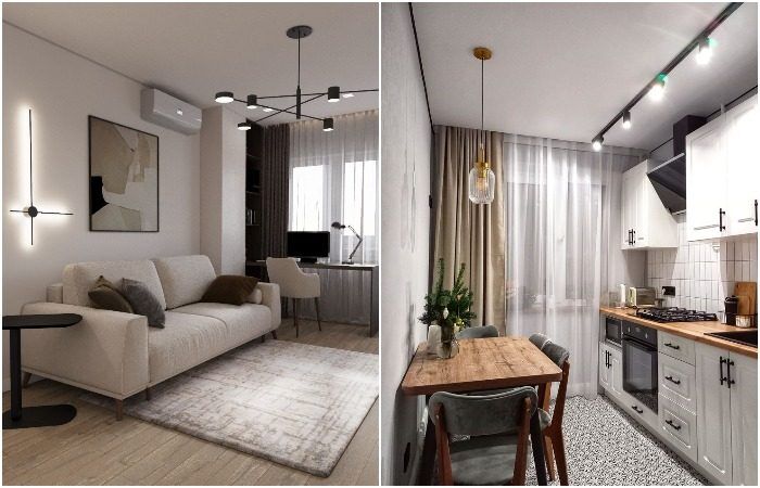 Чтобы интерьер выглядел дорого, важно продумать многоуровневое освещение. Начните с потолочного света, затем добавьте направленный и завершите все декоративным. Светильник на длинном проводе над обеденным столом, торшер около дивана, светодиодная лента под карнизом или вдоль плинтусов, подсветка зеркал и открытых полок в шкафу, гирлянда на окне – вариантов масса. Это поможет сделать интерьер более объемным и глубоким. Кстати, совсем необязательно выбирать дорогие светильники – главное, чтобы они вписывались по цвету и дизайну в вашу квартиру.
