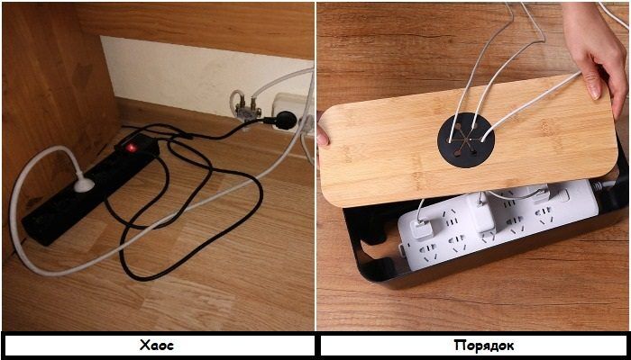 Зарядные устройства, торчащие в розетках, провода под телевизором, пакеты с пакетами, стопка журналом на столике около дивана, бумаги на рабочем столе. Все это создает ощущение хаоса, даже если вы проводили генеральную уборку пару часов назад. Не позволяйте таким мелочам портить ваш интерьер.