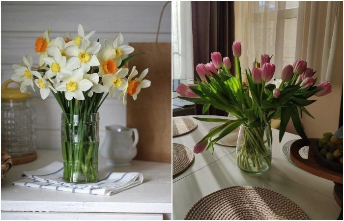 Поставьте на стол букет живых тюльпанов или нарциссов