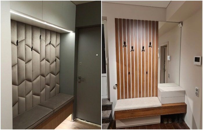 Она может быть сделана практически из любого материала – дерева, металла, МДФ. Выбирайте тот, который лучше всего впишется в интерьер прихожей. Кстати, совсем необязательно искать в магазине готовый экземпляр – вы можете смастерить эстетичное изделие своими руками. Используйте для этой цели отдельные рейки или неширокие доски, а затем закрепите на них понравившиеся вам крючки. При желании дополните панель небольшой полкой, на которую можно будет складывать мелкие вещи, или поставьте вниз сиденье, чтобы удобно было обуваться.