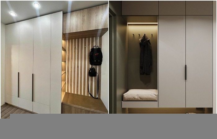 И не просто высокий – важно, чтобы он доставал до потолка. Тогда небольшое пространство прихожей будет использовано максимально грамотно. На антресоли можно будет убрать сезонную одежду, которая сейчас не нужна, чемоданы для поездок, аптечку, а в глубокие отсеки повесить куртки, пуховики, обувь, и другие вещи, которые часто остаются у входа.