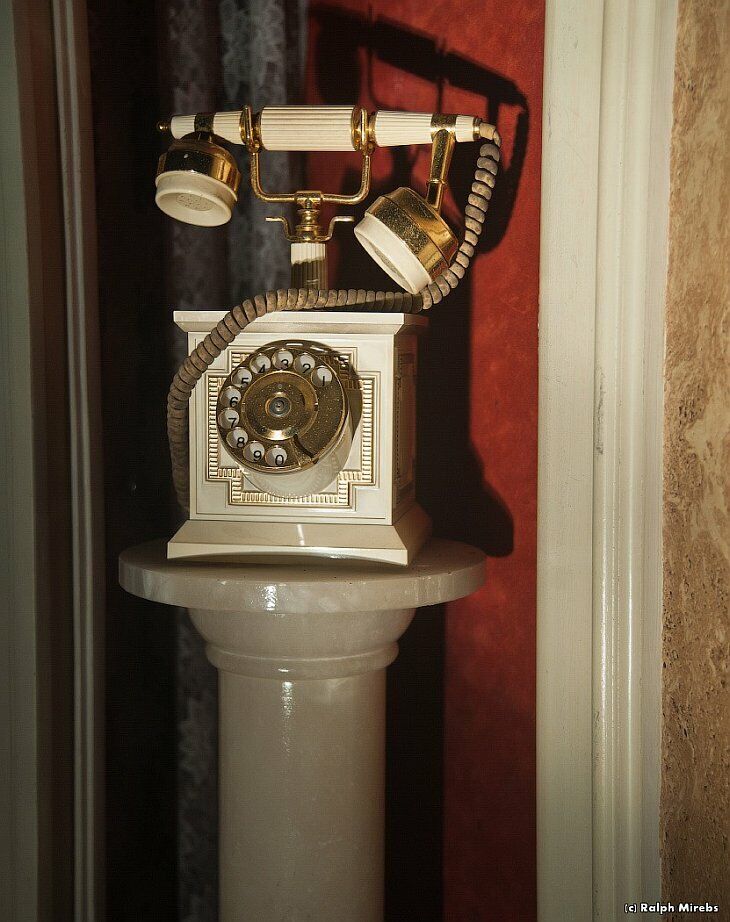 Первый номер декорирован в стиле европейского дворца — статуи, колонны, антикварный телефон, большая люстра: