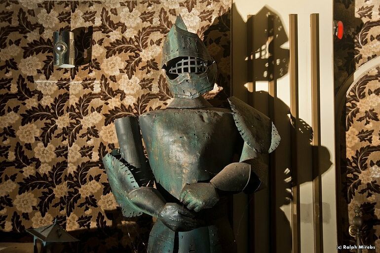 Другой номер исполнен в средневековой тематике — рыцарь в латах, ложе в форме кареты, корабль Викингов: