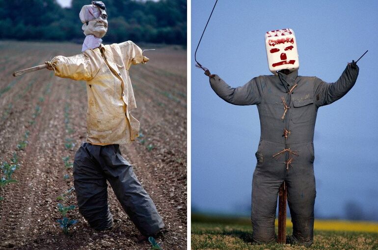 «Разнообразие пугал бесконечно, и все они имеют свой характер. Некоторые стоят, как вкопанные, другие шевелятся. Одни как-будто растут из-под земли, другие, наоборот, будто шагают по полям». (Фото Colin Garratt):