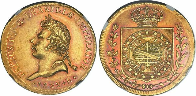 Эксперты относят к список самых дорогих монет мира бразильскую монету девятнадцатого столетия в честь взошедшего на престол Педру Первого. Император Бразилии изображен в виде древнего римлянина, увенчанного славой. В мире насчитывается только 64 штуки. Одну партию продали на аукционе в Чикаго за 138 тысяч долларов.