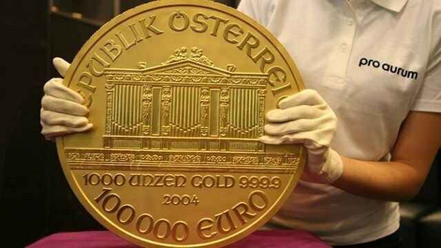 Монета по прозвищу "Большой Фил" имеет номинал в 100 000 евро. Почему ее так назвали? "Филом" монету прозвали в честь Венской филармонии. Австрийский монетный двор выпустил эту монету в 1000 унций золота 999,9 пробы в октябре 2004 года. Вес монеты составляет примерно 31,5 килограммов, а ее диаметр 37 сантиметров. Тираж австрийских монет составил всего 15 экземпляров по отпускной цене 330 тысяч евро.