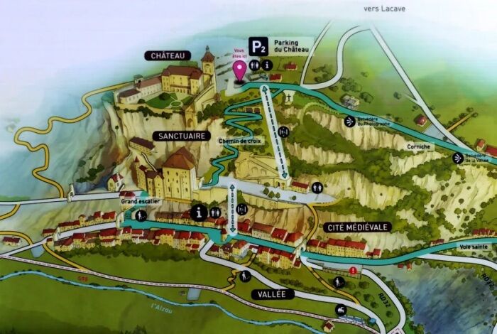 Структура древнего города Рокамадур и его главные туристические маршруты (Франция). | Фото: visit-dordogne-valley.co.uk.