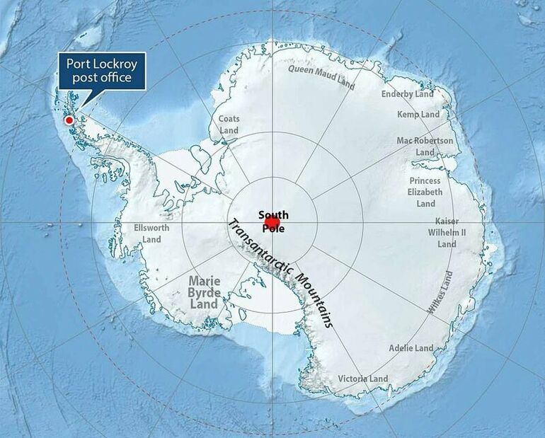 Вокруг бывшей базы - снежные вершины и ледяные скалы: здесь нет ни водопровода, ни интернета, а запасы продовольствия приходится складировать. Каждый летний сезон, который проходит в Антарктиде с ноября по март, здесь работает команда почтовых работников. В настоящее время набирается команда для следующего сезона.