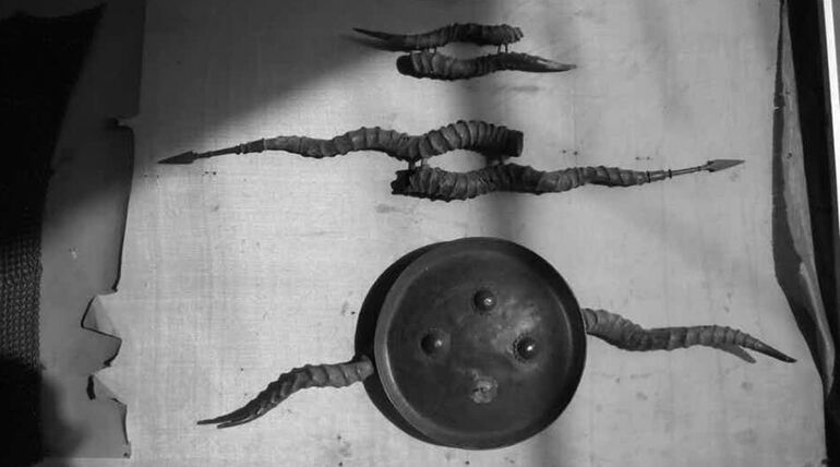 В свое время индийским мусульманам было строго запрещено иметь вообще какое-либо оружие. И те придумали крайне необычный способ самозащиты: два рога индийской антилопы связывались вместе, а посреди крепился небольшой щит, умбон. Даже сегодня существует школа бойцов-маду, правда, они используют уже стальные «рожки».