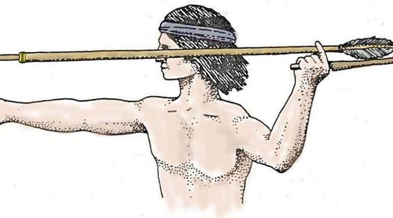 Проще говоря — палка-металка. Навершие посоха позволяло крепить дротик, который летел очень далеко и со значительной скоростью благодаря более длинному плечу силы. Именно этим орудием пользовался человек до появления лука и стрел.