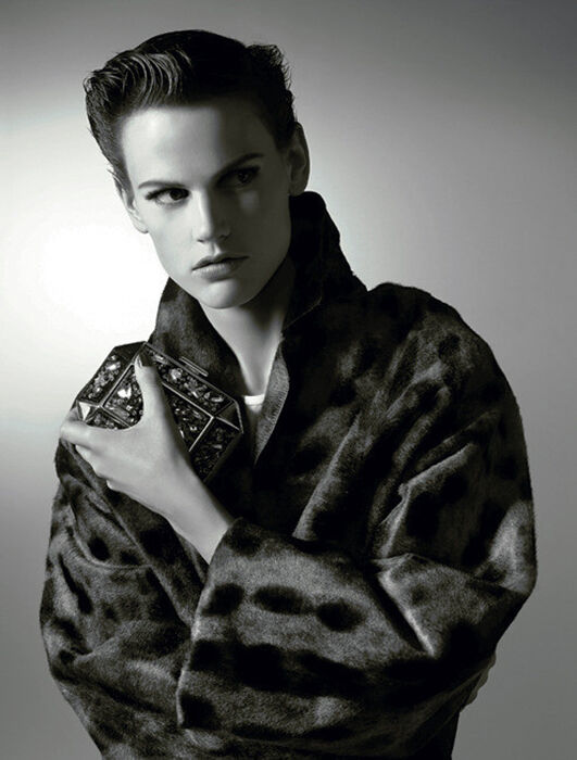 Андрогинная внешность позволяет Саскии рекламировать и женскую, и мужскую одежду.