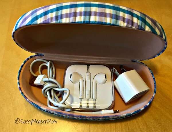 Положите наушники, зарядное устройство и другие вещи, которые могут запутаться или потеряться в чехол для очков. Вы найдете их быстро, не перемешивая все вещи в своей сумочке.