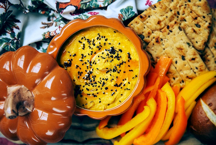Если вы уже давно не можете придумать чем разнообразить завтрак или даже праздничный стол, тыквенный хумус придется как нельзя кстати. Для его приготовления необходимо смешать тыквенное пюре и классический хумус из нута в тех пропорциях, которые вы предпочитаете. Заправьте пасту оливковым маслом и соком лайма, а затем наблюдайте за тем, как гости начнут засыпать вас вопросами об ингредиентах, присутствующих в блюде.