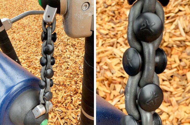 3. На детской площадке были установлены специальные цепные заглушки, чтобы пальцы детей не защемлялись.