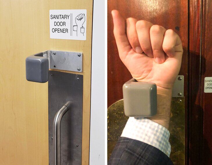 4. В этих общественных туалетах есть устройство для открывания дверей, поэтому вам не нужно прикасаться к ручке при выходе.