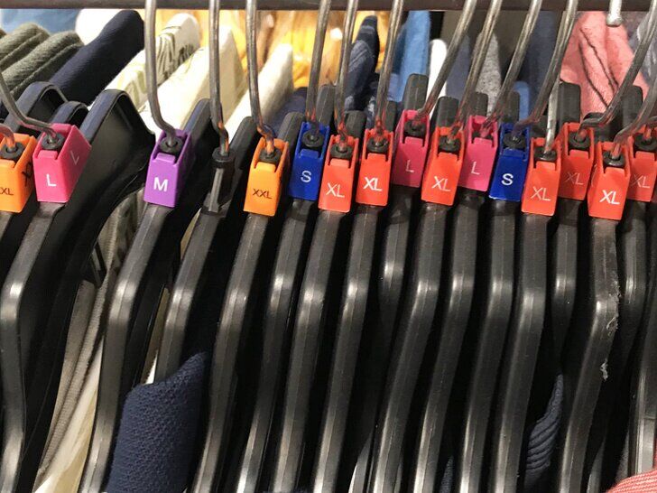 7. Размер футболки указан на самой вешалке. Нет необходимости проверять каждую футболку, чтобы найти правильный размер.