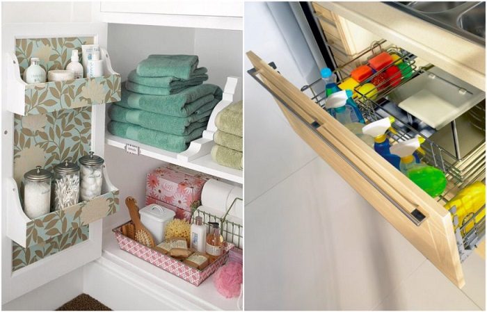 Если всевозможные тряпки, губки, порошки, моющие средства, губки будут расположены в кладовке за семью замками, то вы никогда не сможете собраться с мыслями и затеять уборку. Поэтому первоочередная задача – сделать так, чтобы нужный вам инвентарь всегда был под рукой. Например, чистящие средства для ванны и туалета храните в санузле, тряпки и губки – в ящике на кухне, грязную одежду – в корзине рядом со стиральной машиной и так далее. Обратите внимание: Когда бытовые помощники находятся в доступном месте и часто попадаются вам на глаза, решится на мини-уборку становится гораздо легче.