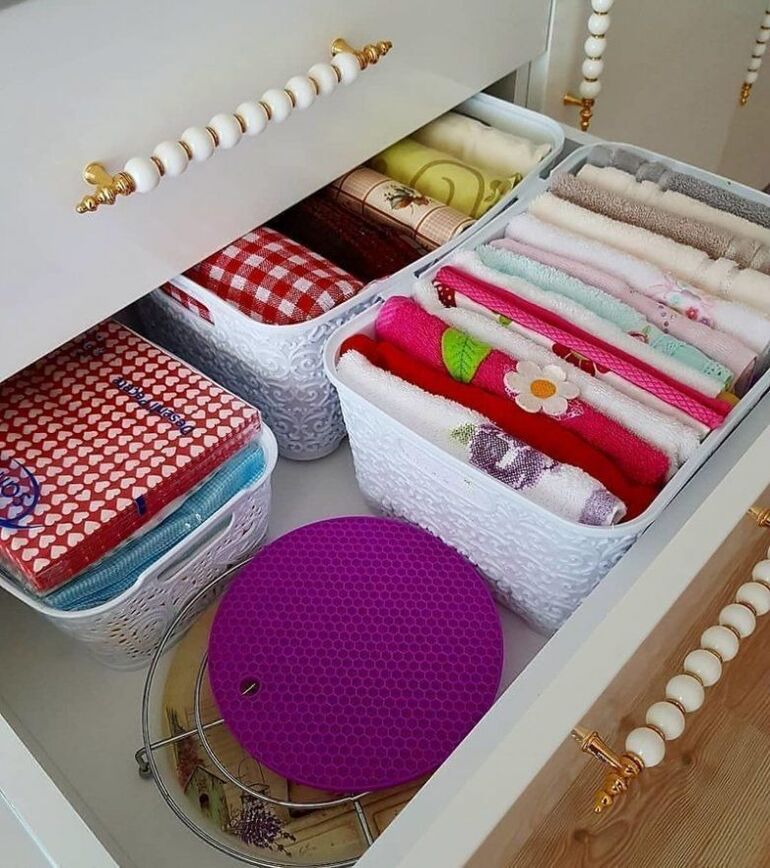 Иногда, чтобы создать видимость убранного помещения, достаточно просто сменить грязный текстиль на свежий, чтобы квартира наполнилась запахом чистоты. Поэтому позаботьтесь, чтобы в шкафу всегда лежали запасные банные и кухонные полотенца, комплекты постельного белья, дополнительная скатерть. А на полку в ванной комнате положите запасные шторки для душа, а также коврики для санузла. Так вы сможете в любой момент сменить текстиль в квартире и добиться эффекта чистоты.