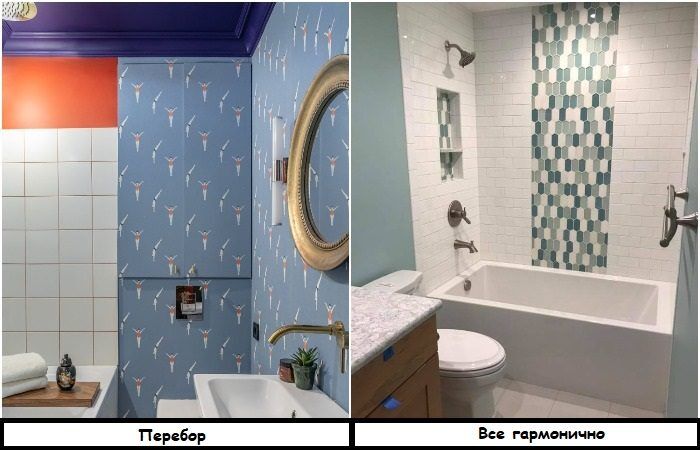 Что касается зеркальной плитки и панно из маленьких зеркал, то они лишь создадут ощущение беспорядка, поэтому в их сторону не нужно даже смотреть.