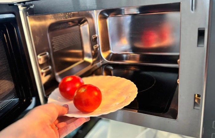 Если вам нужно быстро очистить томаты от кожуры, то просто следуйте нашей инструкции. Сделайте на помидорах надрезы и отправьте в микроволновку на тридцать секунд. Сразу после этого поместите томаты в воду со льдом. Далее кожура буквально сама отойдет от мякоти овоща. Быстро и легко.