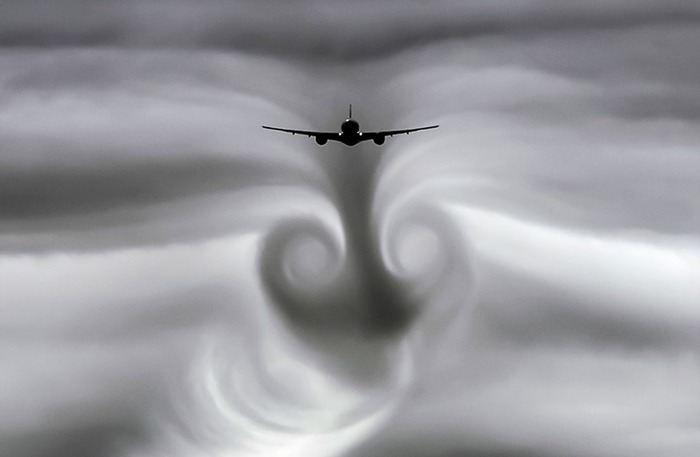 Чем больше самолёт, тем мощнее спутный след. /Фото: dw.com