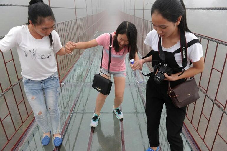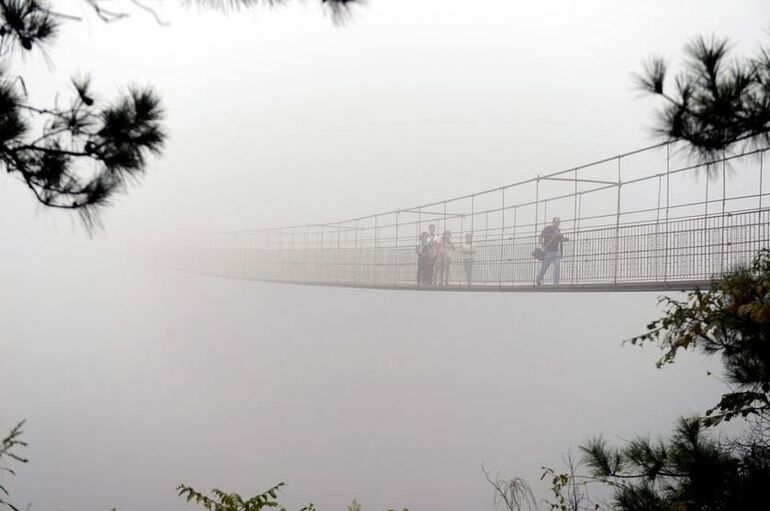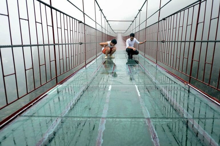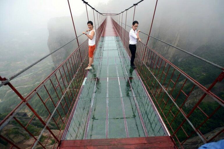 Этот потрясающий мост находится в провинции Хунань, Китай. Расположен он над ущельем выстой в 180 метров. Интересный момент: мост раскачивается на ветру! Так что всех любителей острых ощущений будут рады видеть в живописной деревне Хунанпиджан.