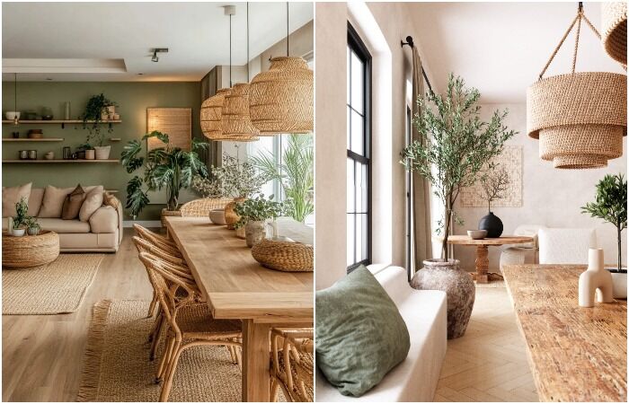 В мире шумных мегаполисов связь с природой особенно актуальна, поэтому неудивительно, что эко-стиль привлекает все больше людей. И дело не столько в приятной цветовой гамме, природных оттенках, которые автоматически делают квартиру уютнее, сколько в использовании натуральных материалов. Камень, ротанг, дерево, бетон, керамика, лен, хлопок – вариантов масса. Если бюджет не позволяет полностью оформить квартиру натуральными материалами, можно прибегнуть к качественным аналогам. Например, выбрать ламинат, имитирующий дерево (но здесь важно, чтобы швы между досками были не слишком заметны).