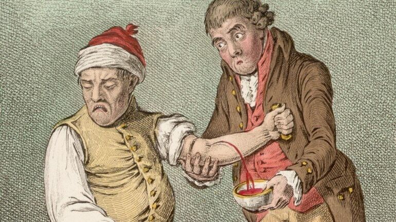Флеботомия была одной из самых распространенных медицинских практик, выполняемых хирургами с древности и до конца 19-го века. Это был популярный метод лечения гипертонии. Временно он успокаивал пациентов и позволял чувствовать себя намного лучше. Первое официально зафиксированное кровопускание было сделано царю Михаилу Федоровичу (1596-1645), первому Романову. Его сын Алексей Михайлович (1629-1676) был заядлым поклонником соколиной охоты. Ему делали кровопускания необычным способом. Сокола сажали на руку царю и он «пускал кровь» ударом клюва. То же самое государь заставлял делать своих бояр.
