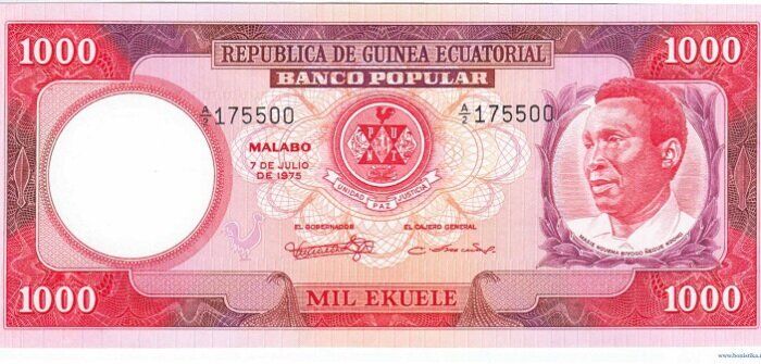 Денежная купюра с изображением президента Нгемы Ндонго.