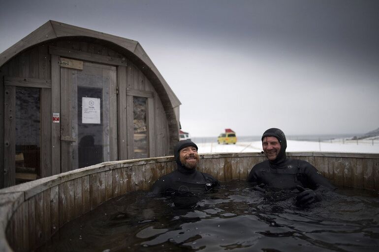 Температура воды — 5 градусов по Цельсию, а температура воздуха — минус два. Вода холодная и гидрокостюм просто необходим. Привыкнуть кататься в гидрике — дело несложное.