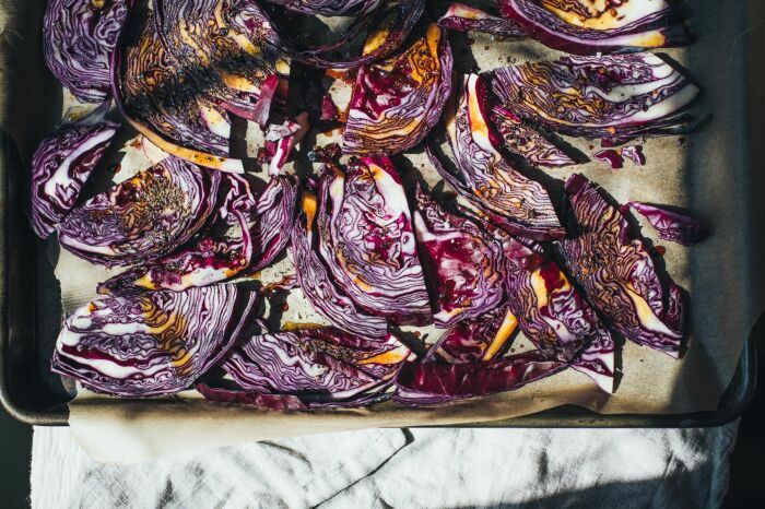 Запечённая красная капуста. \ Фото: thedeliciousplate.com.