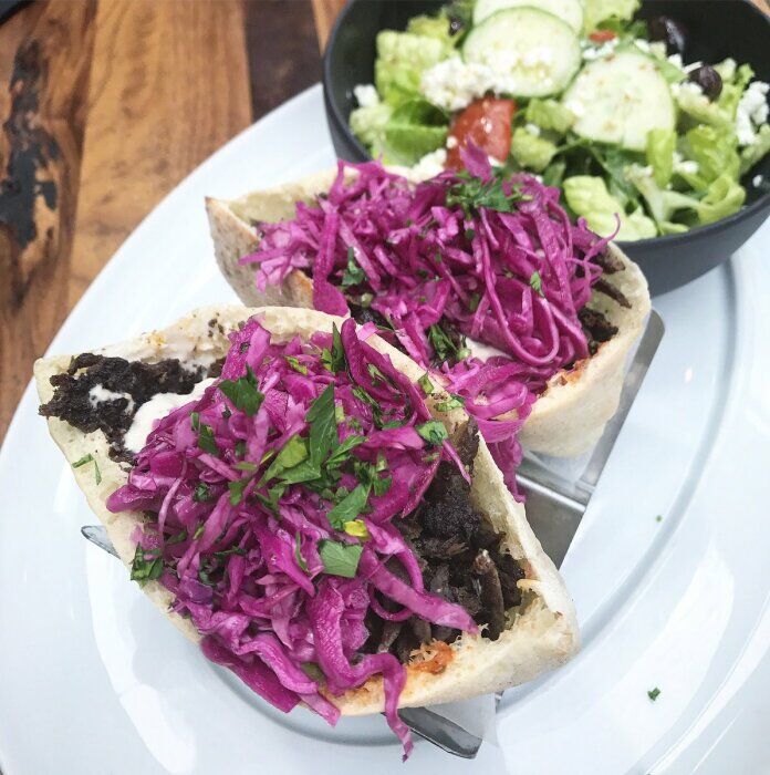 Ещё один вариант вкусного перекуса – это традиционная пита. Попробуйте приготовить её из любого вида фарша, овощей, которые есть под рукой, и, конечно же, красной капусты!