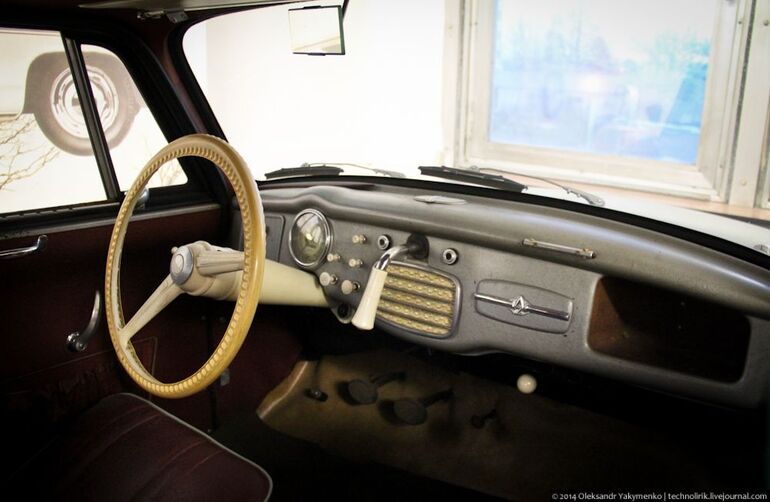 05. Примечательно, что тяга переключения передач проходила прямо сквозь радиатор системы охлаждения, который располагался за двигателем. Выбор передач осуществлялся рычагом, проходящим через панель приборов.
