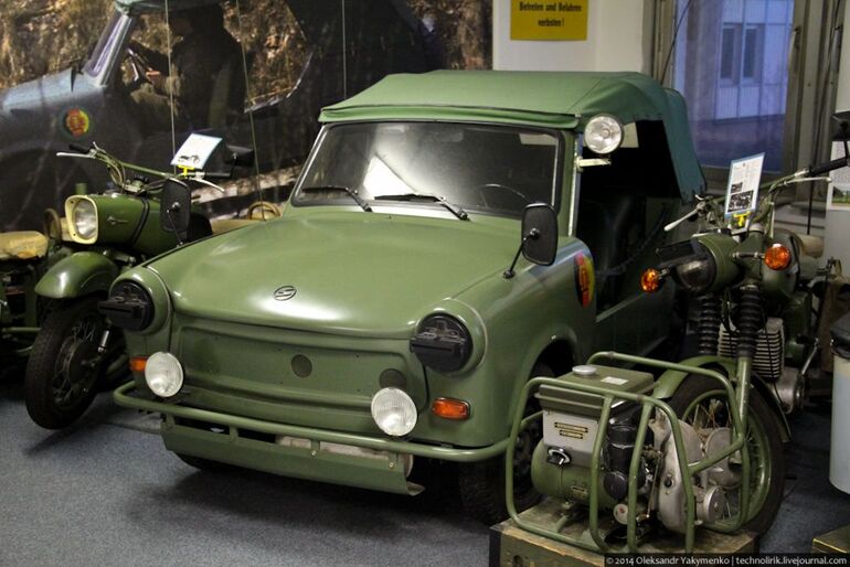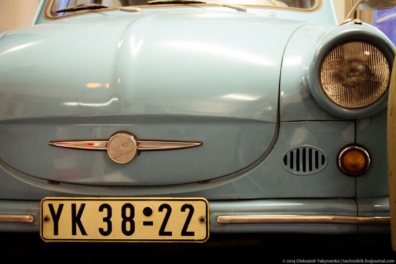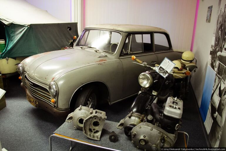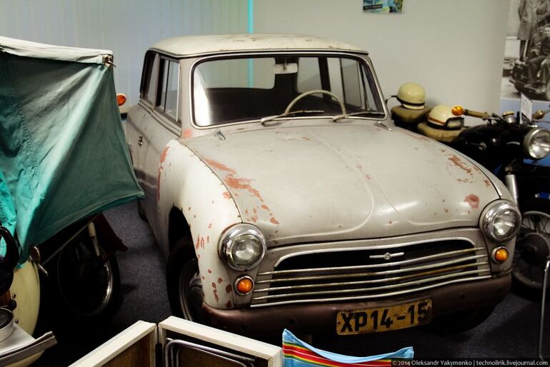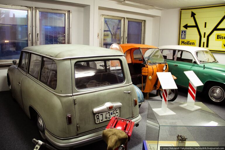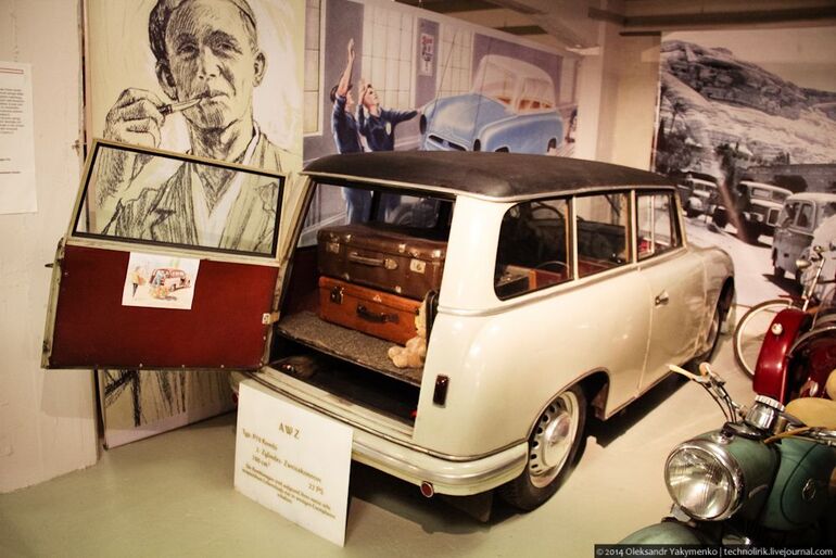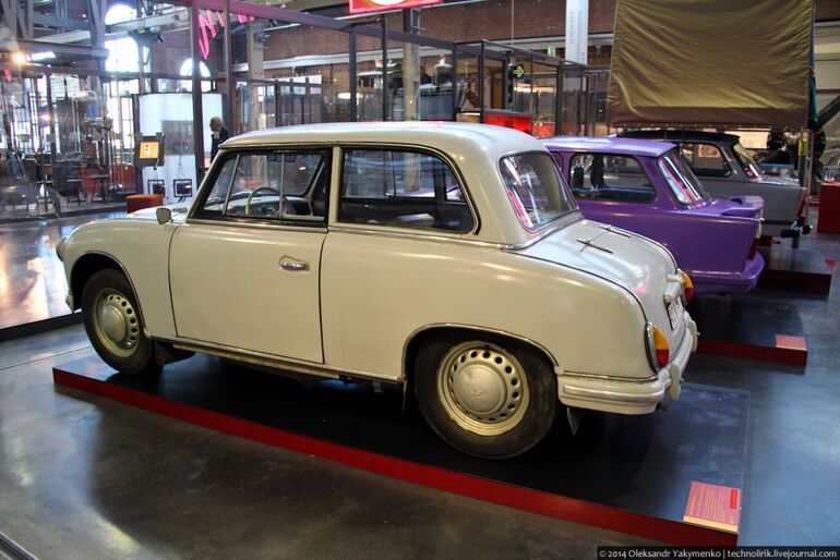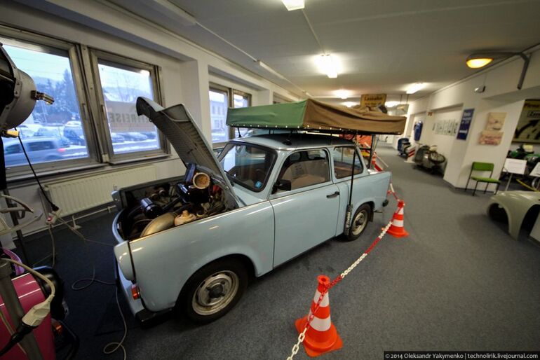 14. Приподнятый Трабант Р50 в дрезденском музее ГДР.