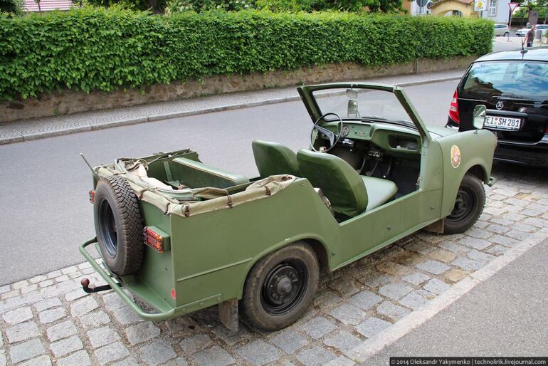 28. В 1966 производственная палитра пополняется еще одной кузовной версией Трабанта - Kübel P601 A, которая была специально создана для пограничников, охраняющих западную границу страны, в качестве замены патрульным мотоциклам. Машина производилась практически без изменений вплоть до 1990 года.