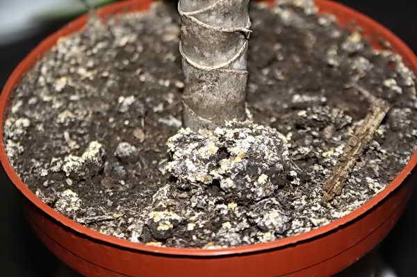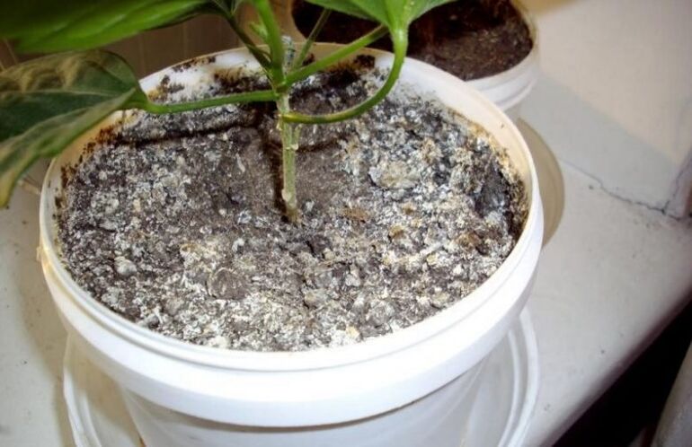 Вывести её не составляет труда, однако, за этим необходимо пристально следить, ведь плесень растёт не только на поверхности земли, но и забирается в глубь грунта.
