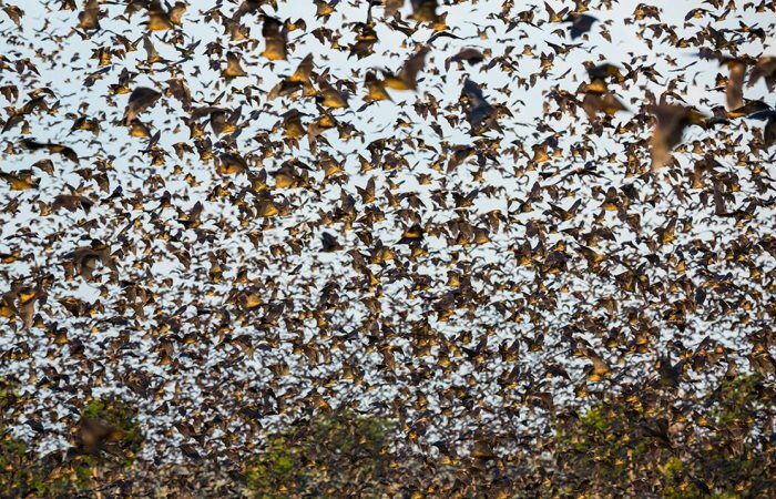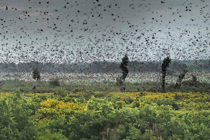 Самая масштабная миграция млекопитающих на Земле похожа на какой-то фильм ужасов. Речь о миграции летучих мышей. Наблюдать такое явление можно каждый год на территории Демократической Республикой Конго и Национального парка Касанка в Замбии. Мышей так много, что они способны полностью облепить дерево, превратив его в черную кишащую массу.