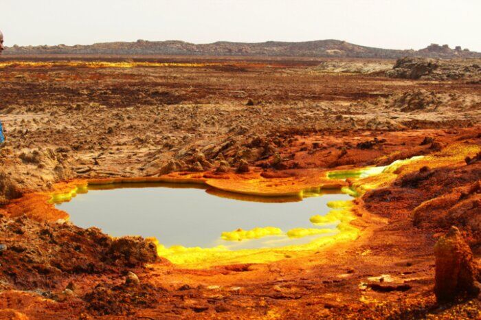 Это не кадры с Марса. Это впадина Данакиль в Эфиопии. Самое низкое место на планете, самое жаркое, самое сухое и самое странное. Здесь находятся почти кипящие горные ручьи, невероятно соленые озера, всюду сочатся ядовитые испарения. При всем при этом здесь есть жизнь. В таком экстремальном месте живет сразу несколько колоний микроорганизмов.