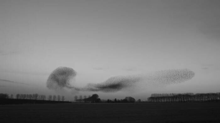 Иногда можно увидеть быстро движущиеся и легко меняющие свою форму темные облака. На самом деле это никакие не облака, конечно, а гигантские стаи скворцов. Любопытно, что птицы не просто летят, но еще и издают чириканье. Такое явление называют «мурмурация».