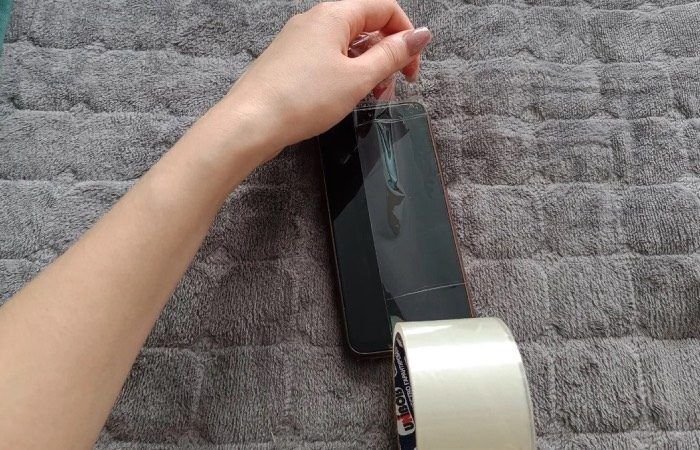 Мы предлагаем вооружиться самым обычным скотчем. Именно им стоит аккуратно обклеить стекло смартфона, чтобы не допустить появления на нем царапин. А на следующий день вы уже сможете спокойно съездить за новым защитным стеклом и просто снять скотч.