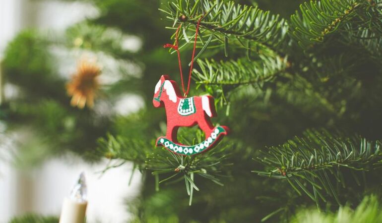Расписные элементы – идеальный выбор. Хохлома, гжель, матовые шары с орнаментом, фигурки ангелов, птиц, лошадок. Они добавляют характер, но не перегружают.