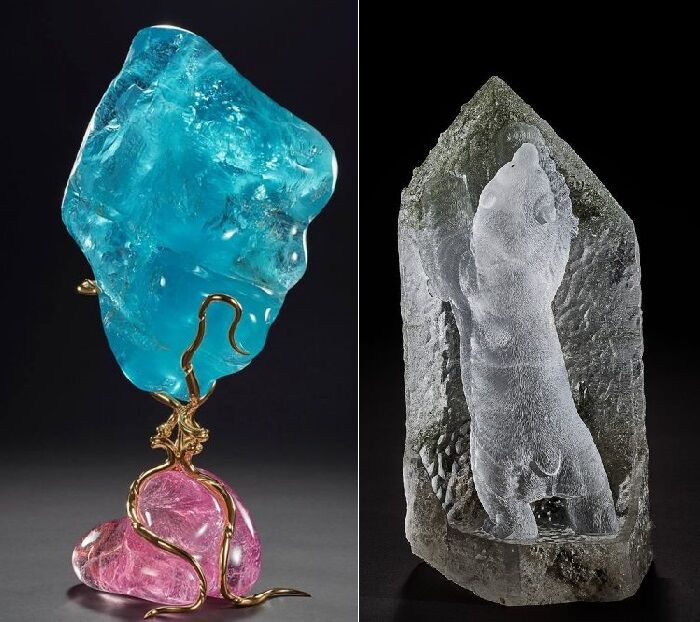К примеру, его работа «Дух Неба», которая на первый взгляд кажется простой и незамысловатой, сохранила тонкий баланс между природной красотой полупрозрачного бразильского морганита и восточноафриканского аквамарина.